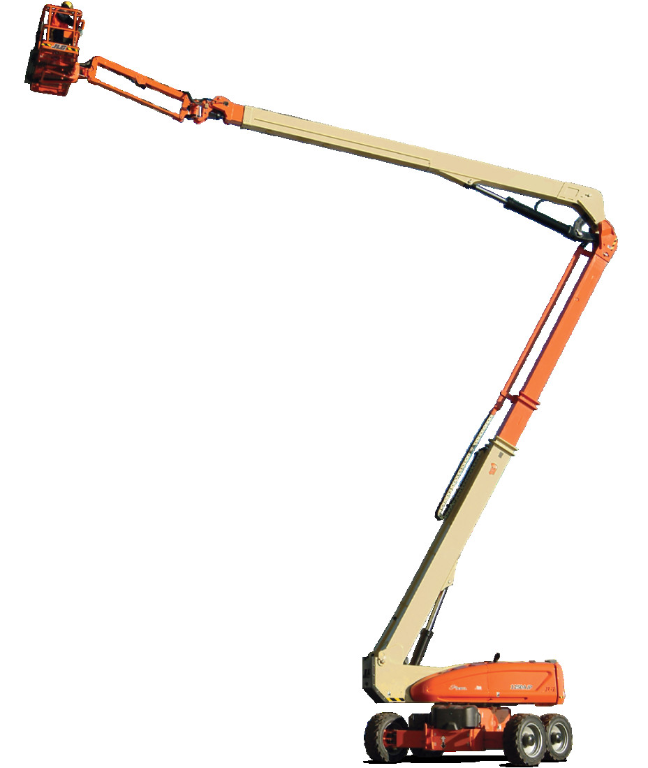The 125 ft diesel dual fuel articulating boom lift is built to lift operators to difficult locations requiring horizontal reach. Offering a total reach of 125 ft, it allows workers to precisely position themselves for tasks in hard-to-access areas. The lift provides the necessary stability for various applications, including outdoor maintenance, industrial tasks, and construction projects. Powered by a dual fuel diesel engine, it is ideal for outdoor use.